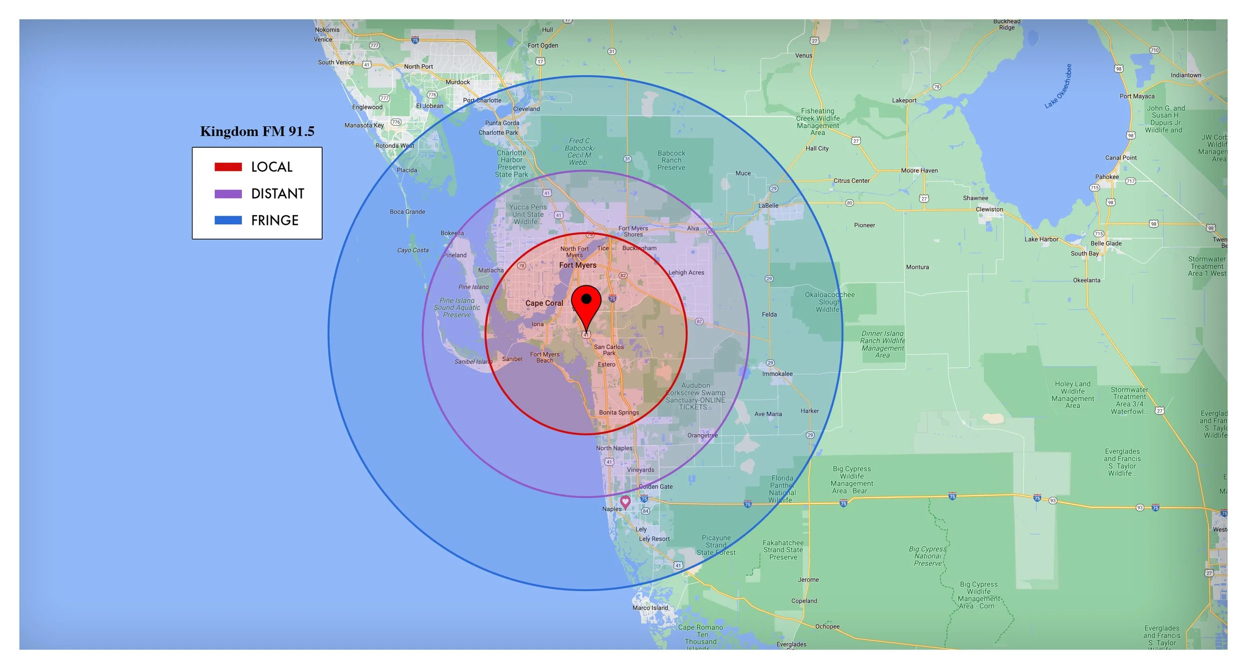 Our Coverage Map illustrates the reach of Kingdom FM 91.5, showing where you can expect to tune in to your favorite station.